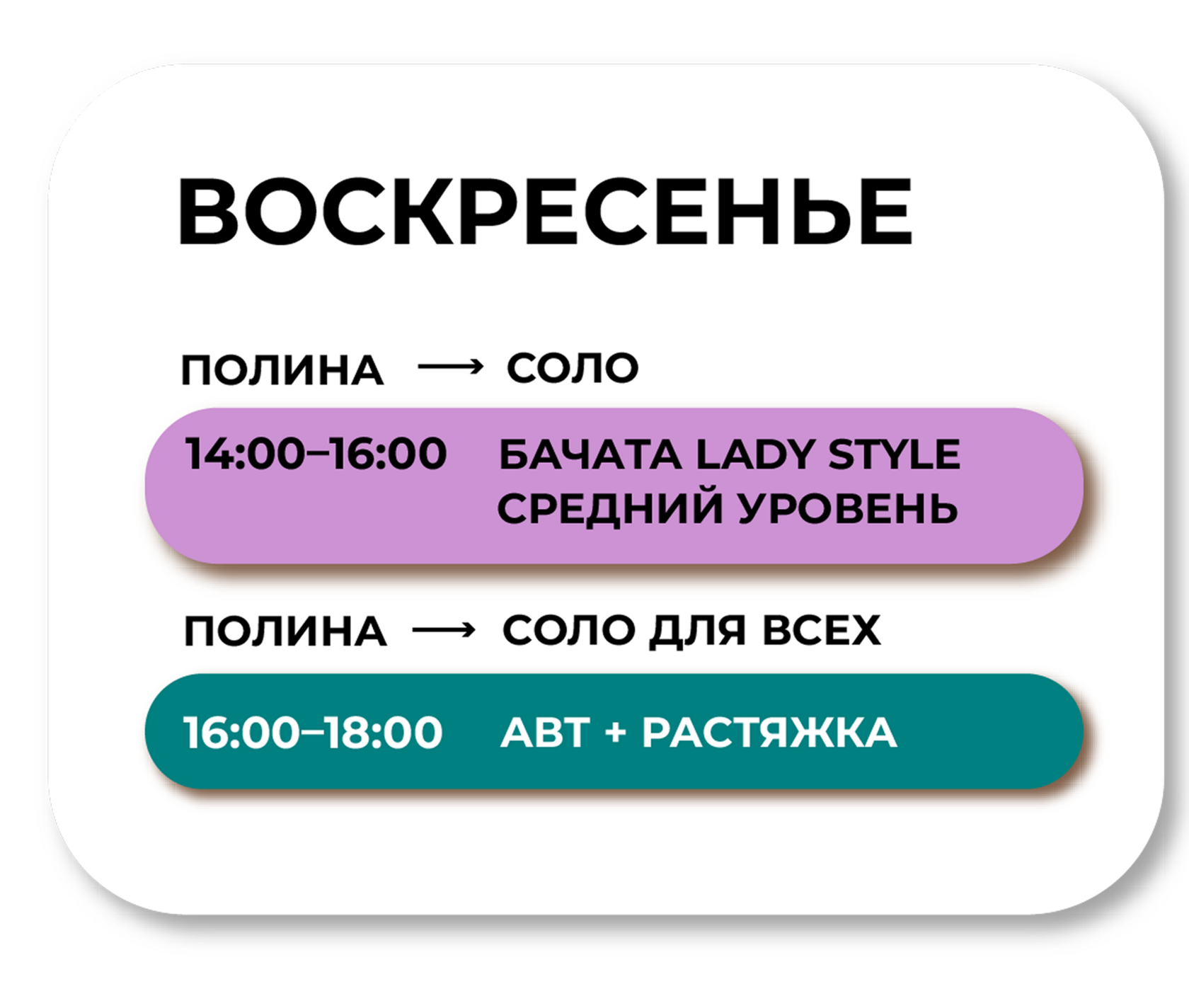 Отличное место для тренировок по разным направлениям танца, супер преподаватели!!! Полине отдельное спасибо! Она преподает бачату и растяжку.